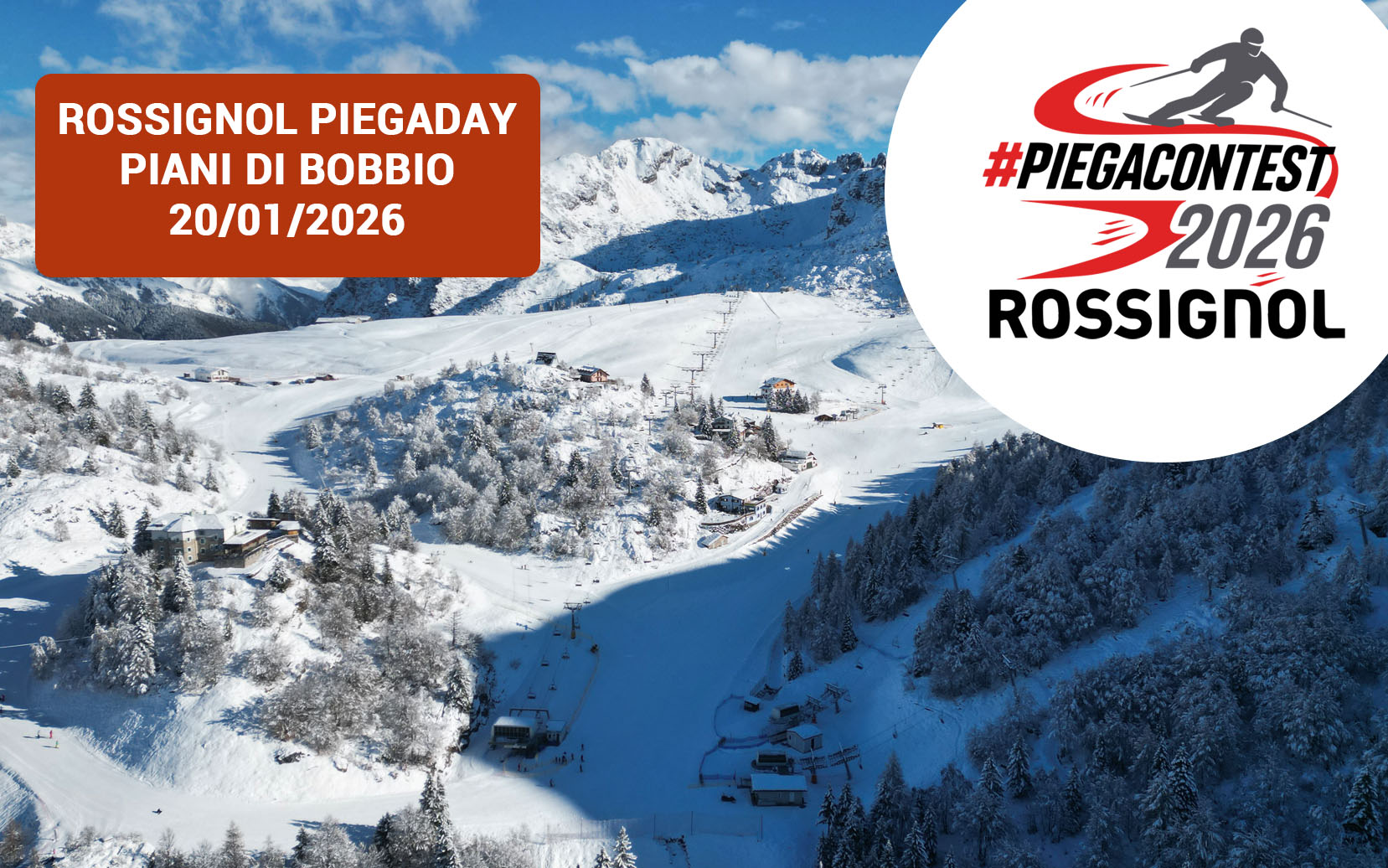 Appuntamento dalle 10:00 alle 12:00 sulla pista 3 Fabiani per il secondo appuntamento con il PIEGADAY della stagione 2025/2026! Non serve prenotare e non c'è da pagare nulla: basta presentarsi nel punto di ritrovo indicato, disegnare le proprie curve e lasciare che la videocamera faccia il resto. Tutti i partecipanti che prima della chiusura delle piste, sabato 3 Gennaio, pubblicheranno il video, riceveranno in omaggio il gadget Neveitalia della stagione!