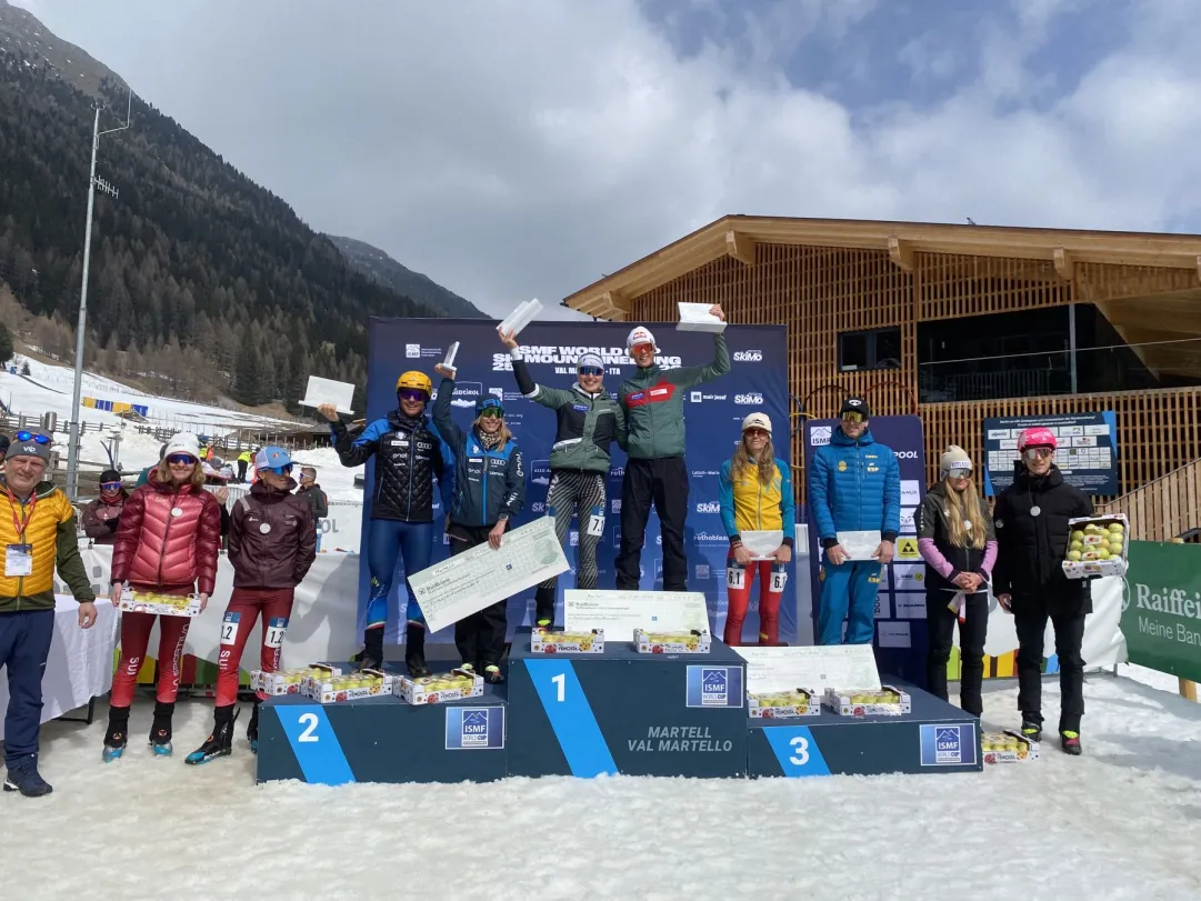 In Val Martello, la sesta tappa di Coppa del Mondo regala a Johanna Hiemer e Paul Verbnjak la prima vittoria per l'Austria nella penultima gara a coppie miste della stagione. Alba De Silvestro e Michele Boscacci, nonostante ancora un po’ di fatica dalla Pierra Menta, portano a casa un ottimo 2° posto che regala all’Italia la testa della classifica per Nazioni della Mixed relay a una gara dalla fine. Domenica c’è la Sprint.