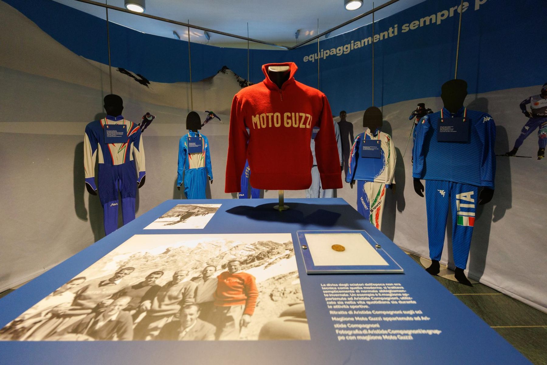 Pettorali da gara, coppe e equipaggiamento utilizzato nelle competizioni raccontano il progresso tecnico, attraverso i decenni, delle discipline olimpiche più rappresentative del territorio: dalle discese dello sci alpino alle gare di short track, dai tracciati del fondo fino allo sci alpinismo, che farà il suo esordio olimpico proprio a Bormio, sull’iconica pista Stelvio, il 19 e 21 febbraio 2026.