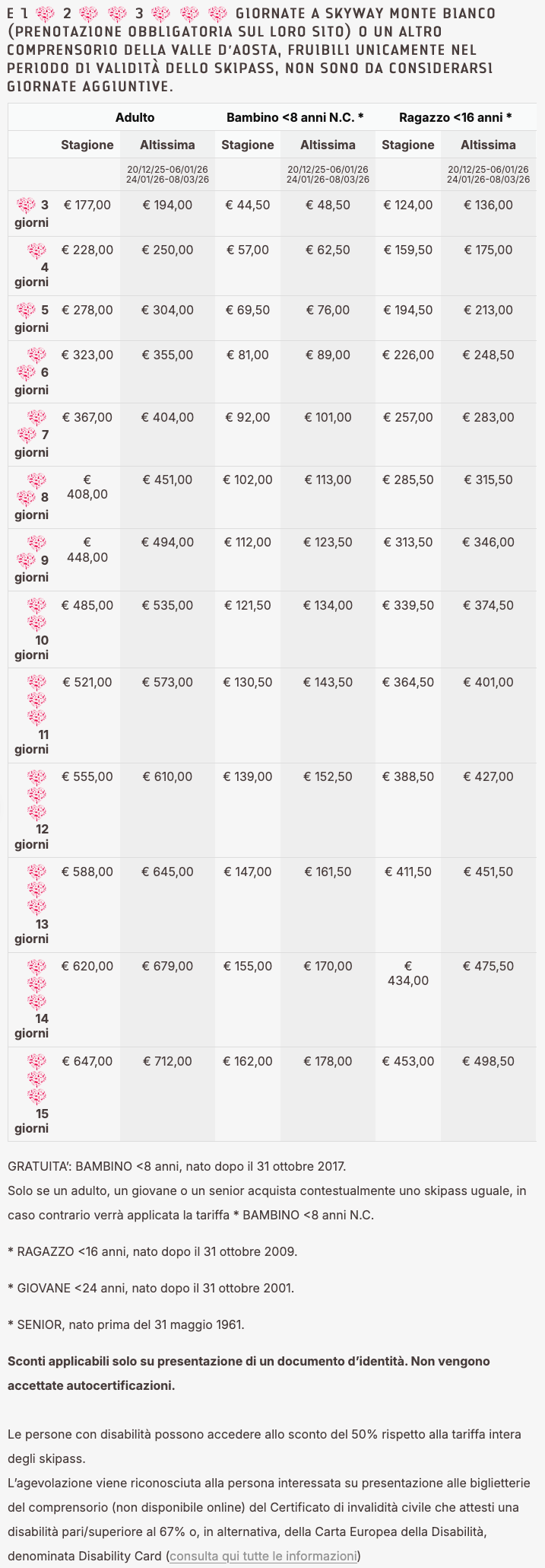 Skipass Courmayeur Mont-Blanc 2025/2026
