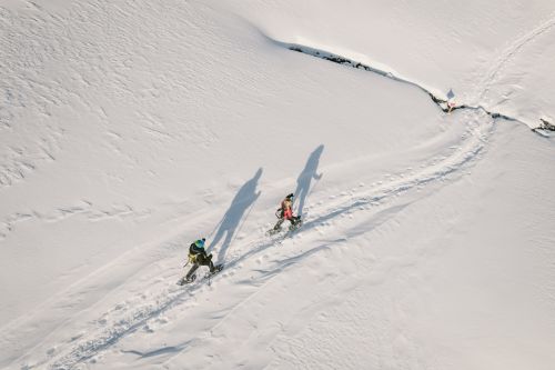 Un viaggio in quota nella natura seguendo le orme delle creature di montagna. Un viaggio sensoriale in una conca glaciale, soleggiata e riscaldata prima dall’accoglienza e dal calore di un rifugio ladino: la conca del Ciampac è quanto di meglio si possa chiedere da una giornata sulla neve con le ciaspole. Da soli o in compagnia di una guida alpina, il percorso è un palcoscenico privilegiato, ad ogni passo, sulle Dolomiti del Sella e del Pordoi fino alla Marmolada, all’interno di un teatro di rocce scure, quelle della Crepa Neigra. Perché qui, un tempo c’era un vulcano. La conca è abitata da mufloni, camosci, ermellini, volpi e lepri che lasciano davvero tracce riconoscibili sulla neve. La passeggiata è un anello che permette di godere del silenzio e concentrarsi sul ritmo del cuore che avanza bruciando fiato e parole prima di una meritata e golosa merenda in uno dei rifugi intorno.