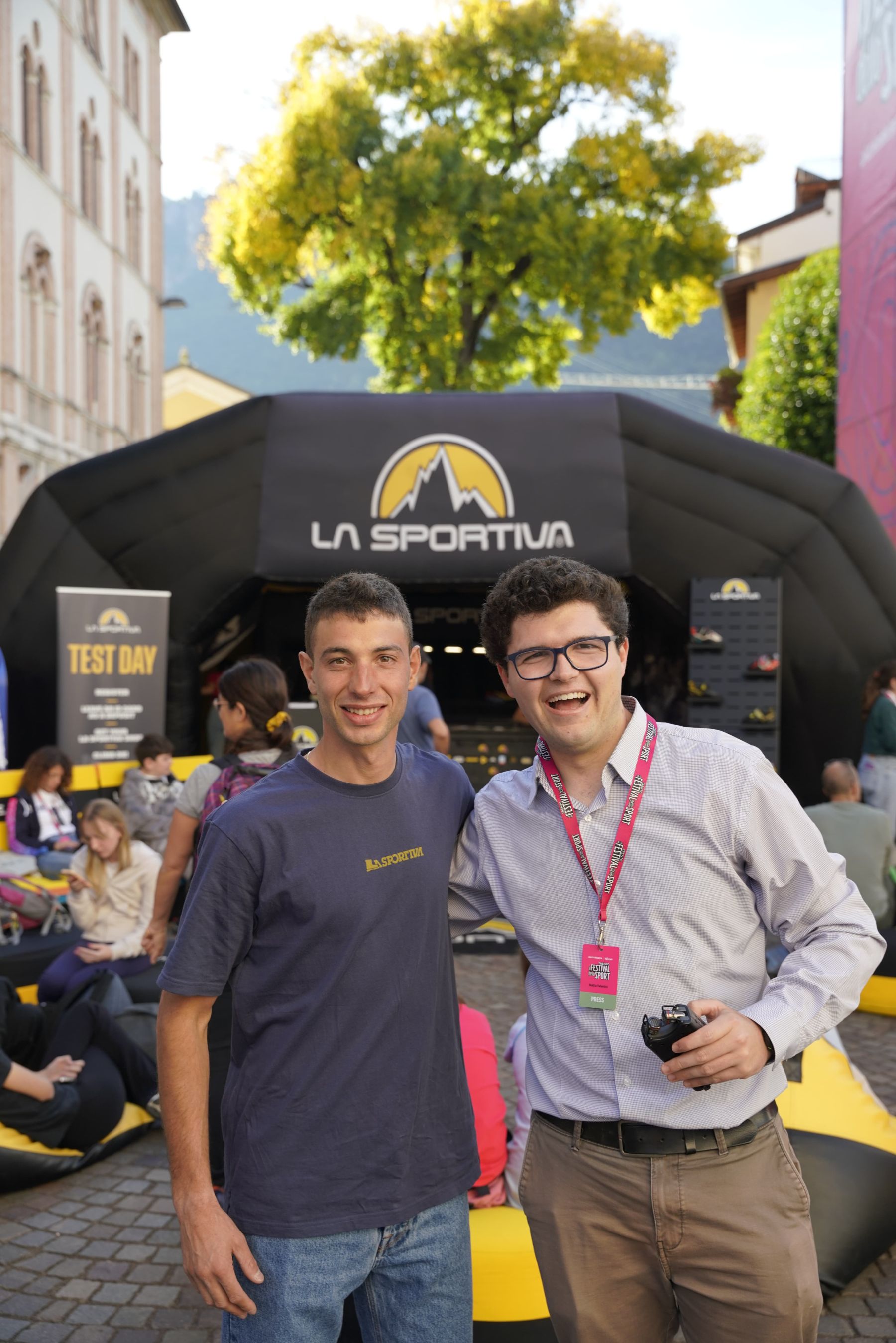 Mattia Valentini con lo skialper Nadir Maguet al Festival di Trento