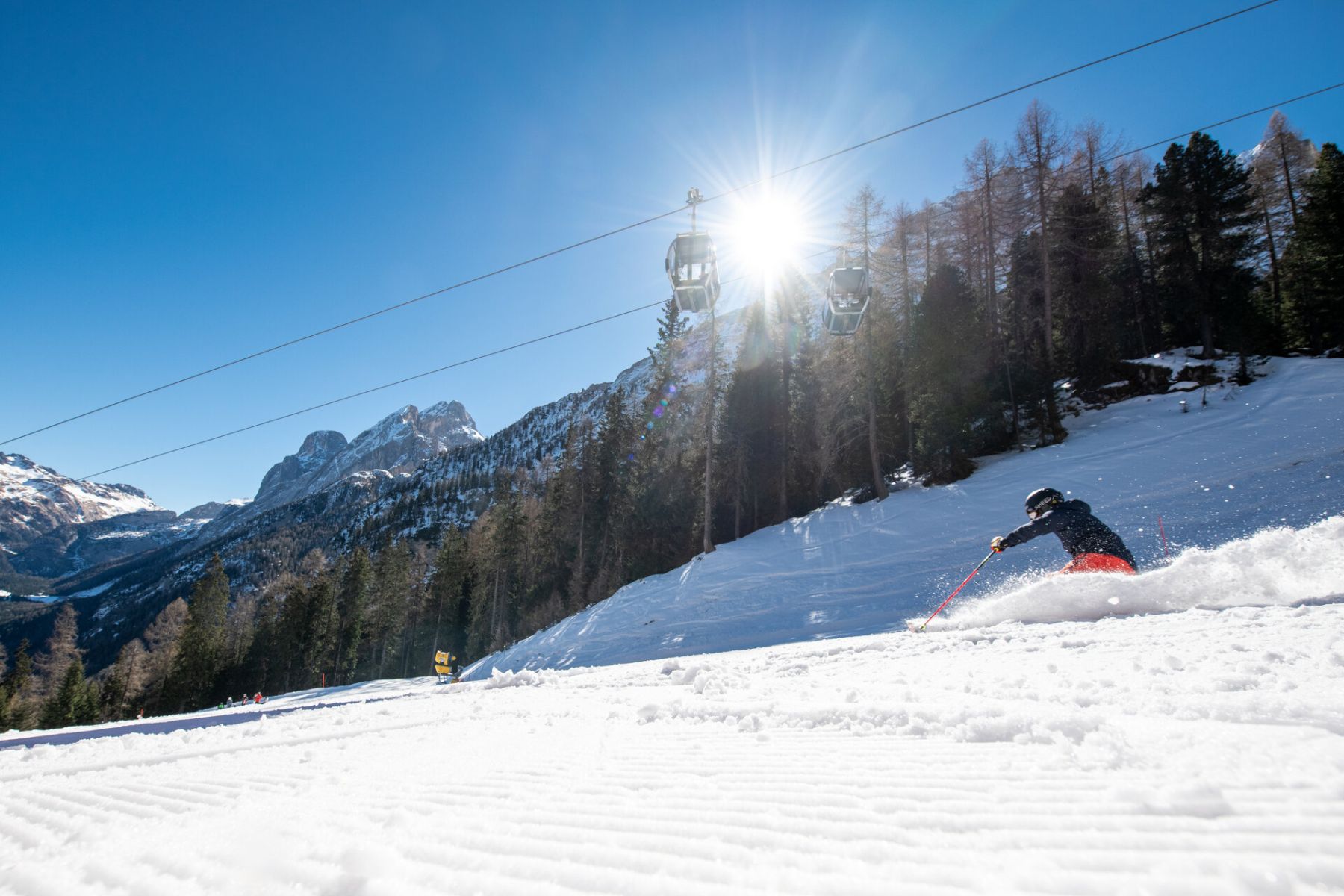 Una delle piste nere più famose ed emozionanti di tutta la Val di Fassa è la Ciampac, un tracciato impegnativo, adatto a sciatori esperti, che si immerge in un serpentone nel bosco e scende quasi in picchiata sino ad Alba di Canazei con pendenze fino al 56%.