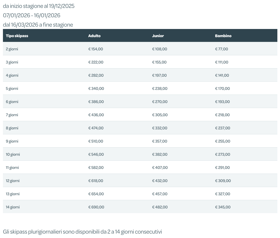 Skipass Plurigiornaliero Alta Stagione Superskirama