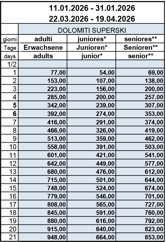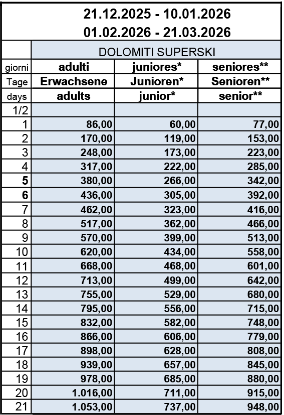 Skipass Alta Stagione Dolomiti Superski 2025/2026