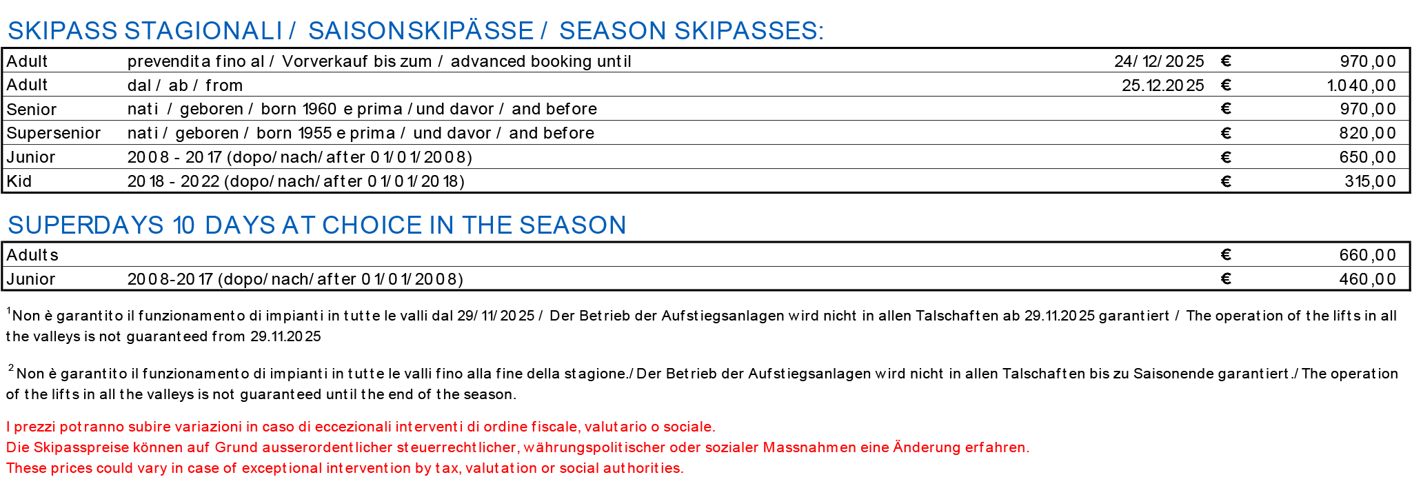 Skipass Pre-Stagione Dolomiti Superski 2025/2026