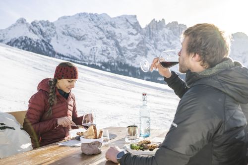 Per gli amanti della cucina, ci sono rifugi e malghe che propongono piatti tipici come canederli, polenta con funghi e formaggio fuso e una merenda tirolese accompagnati da un calice di vino altostesino. Uno dei rifugi più belli a Obereggen è il Rifugio Oberholz, a quota 2096 m, raggiungibile con l'omonima seggiovia. Si tratta di un capolavoro architettonico con tre Stuben, l’area lounge, il bar e la terrazza panoramica. La struttura è riscaldata esclusivamente con energia geotermica.