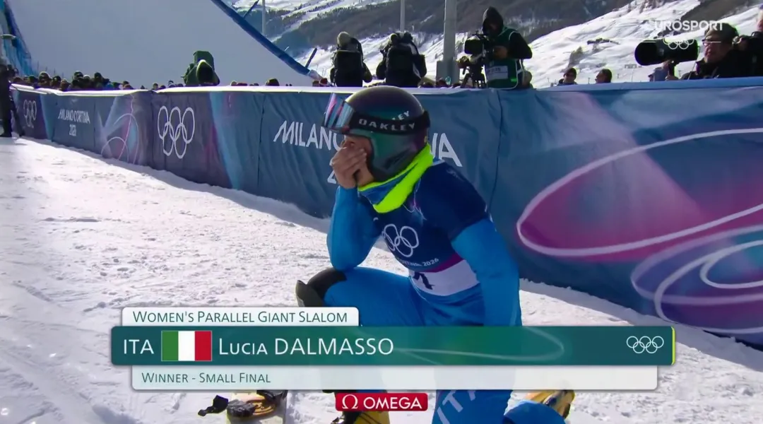 VIDEO OLIMPIADI MILANO-CORTINA 2026 - Commovente small final nella gara femminile del PGS. Nel derby tutto italiano con Elisa Caffont, Lucia Dalmasso si impone per 11 centesimi contro la connazionale e sale per la prima volta in carriera sul podio olimpico. Lo snowboard alpino porta così la sua quota al medagliere dell'Italia.
