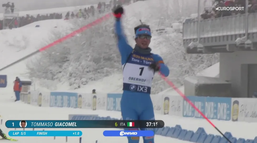 Tommaso Giacomel raddoppia nella Pursuit e entra nella storia del biathlon italiano