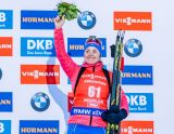 L'austriaca recupera 12 secondi alla finlandese nell''ultimo giro e ottiene la prima vittoria in carriera in una Pursuit. Hanna Oeberg recupera 50 posizioni e chiude in nona posizione. Lisa Vittozzi che sta lavorando per ritrovare il ritmo gara commette due errori mentre Wierer è diciannovesima con tre errori.