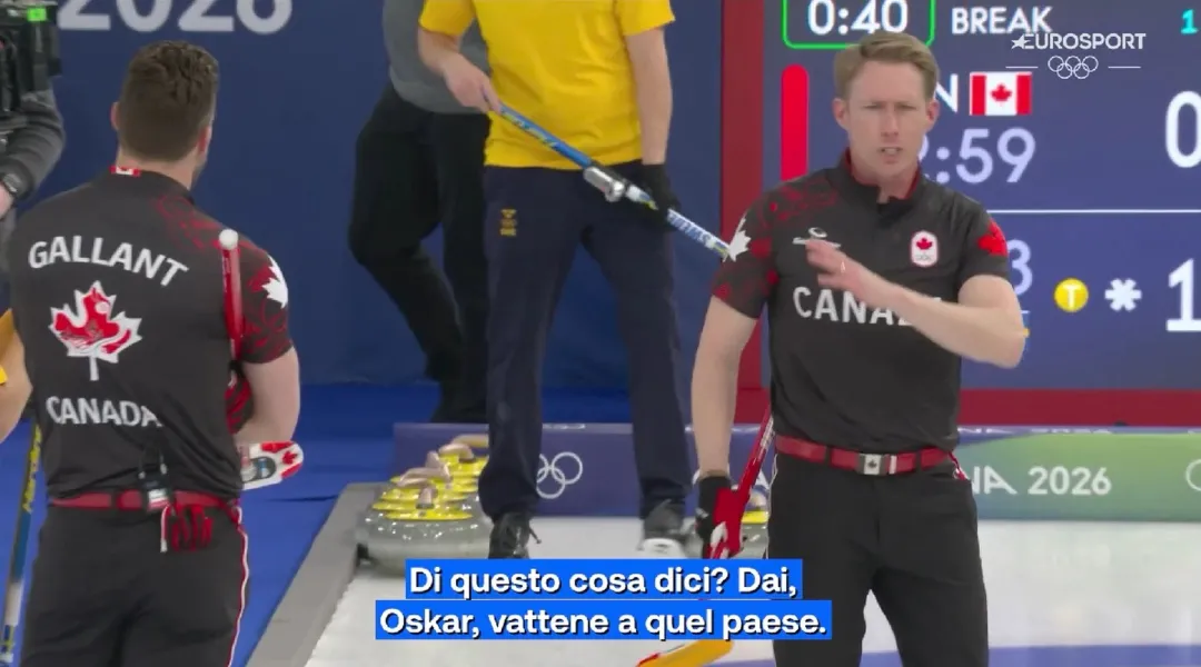 VIDEO CURLING, MILANO CORTINA 2026 - Accusa, tensioni e parole forti durante il 9° end di Canada-Svezia, sfida valida per il round robin del torneo maschile. Oskar Eriksson accusa il third avversario, il canadese Marc Kennedy, di aver toccato due volte la stone dopo la hogline. Kennedy non ci sta e replica alle accuse, mandando letteralmente a quel paese Eirksson. Rivivi le immagini.