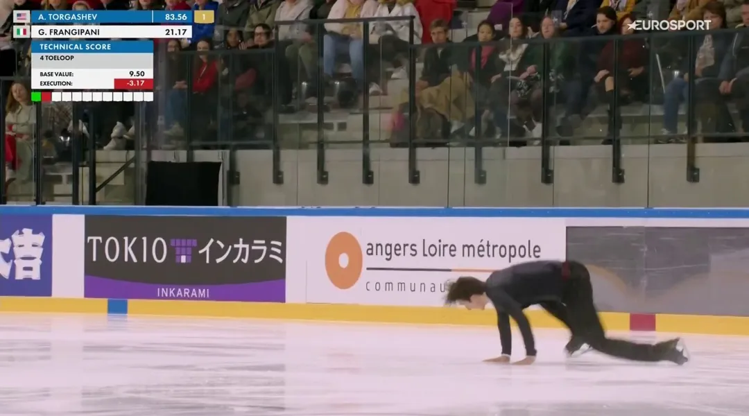 VIDEO PATTINAGGIO ARTISTICO - GRAND PRIX FRANCIA - L'azzurro si fa prendere dal nervosismo dopo il primo elemento sbagliato e non riesce a raddrizzare il suo esercizio sulle note de "Il Padrino". Per lui tanti elementi da risistemare: non solo i salti, ma anche le trottole soprattutto in condizioni di fatica fisica e tensione emotiva.
