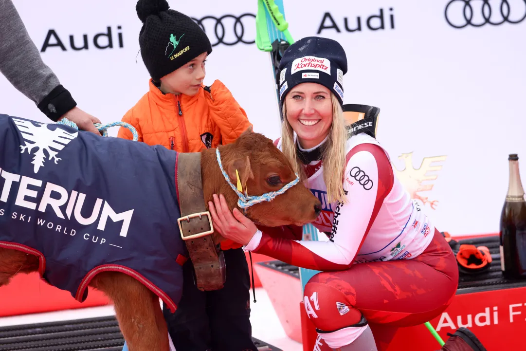 La decima vittoria in Coppa del Mondo della stiriana, nella discesa sulla Oreiller-Killy (con splendido vitellino in premio), raccontata dalla diretta protagonista. Weidle-Winkelmann torna sul podio dopo quasi 3 anni e guarda alla "sua" Cortina, Vonn mantiene il pettorale rosso ma è arrabbiata. "Ho commesso un errore grave, devo migliorare".
