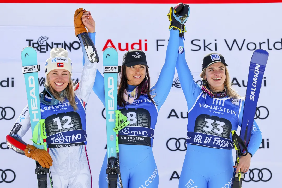 E’ stato il week-end delle prime volte per le azzurre, anche se la trionfatrice della domenica in Val di Fassa, che si è presa da campionessa il settimo super-g di CdM su “La VolatA” di Passo San Pellegrino, è una donna che in tanti anni è stata garanzia di questa nazionale, perché Elena Curtoni, che ha sfiorato anche una coppa di specialità e sempre una medaglia nei grandi eventi, vivendo una grande delusione nel super-g di Milano Cortina 2026, ha vissuto una grande carriera, condita da 12 podi e 3 successi.