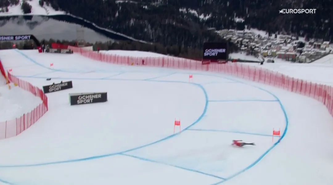 Caduta tremenda per Gisin: spigolata a tutta velocità, finisce nelle reti
