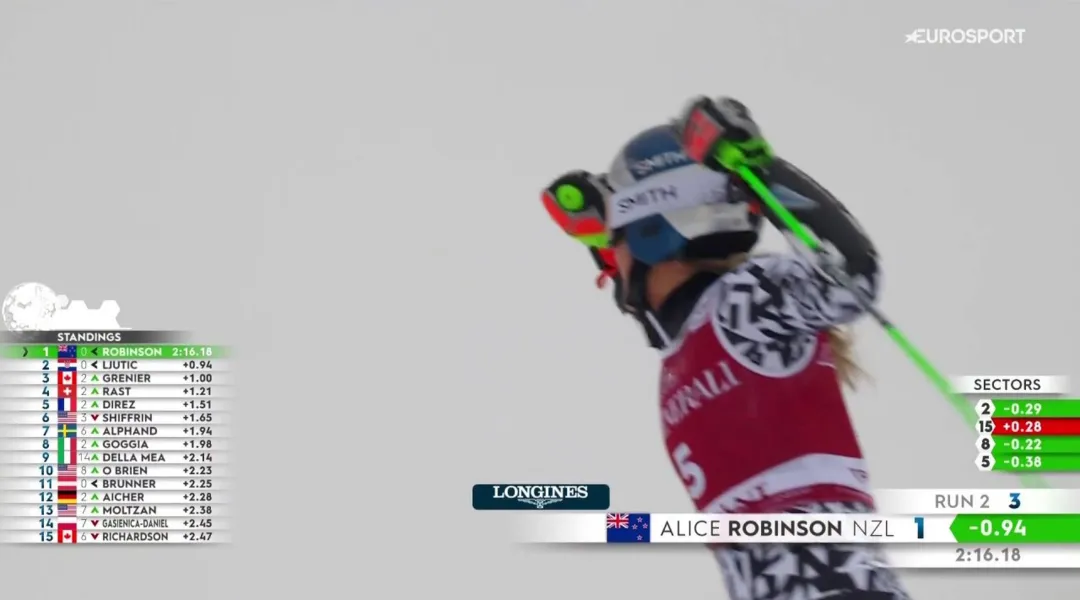 VIDEO SCI ALPINO FEMMINILE - COPPA DEL MONDO - Alice Robinson si conferma in splendida forma e dopo Copper Mountain vince anche il primo dei due giganti di Tremblant. La neozelandese affronta la seconda manche senza risparmiarsi e resta davanti a Zrinka Ljutic di ben 94 centesimi. Podio casalingo per Valerie Grenier.
