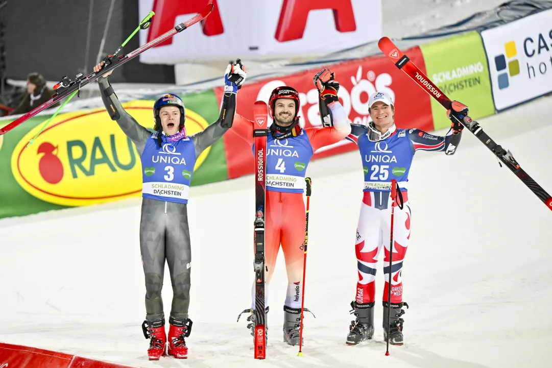 Le reazioni dei protagonisti di un gigante a Schladming dominato dal 29enne rossocrociato davanti al brasiliano, alla terza piazza d'onore consecutiva nella specialità e ora 2° a 103 pt da Odermatt. Loic: "Sul ghiaccio e su questa pista mi sono sempre trovato bene". Il fenomenale classe 2003 francese, al primo podio (e sabato scorso aveva chiuso 12° in discesa sulla Streif), vede le Olimpiadi: "Spero basti per andare ai Giochi".