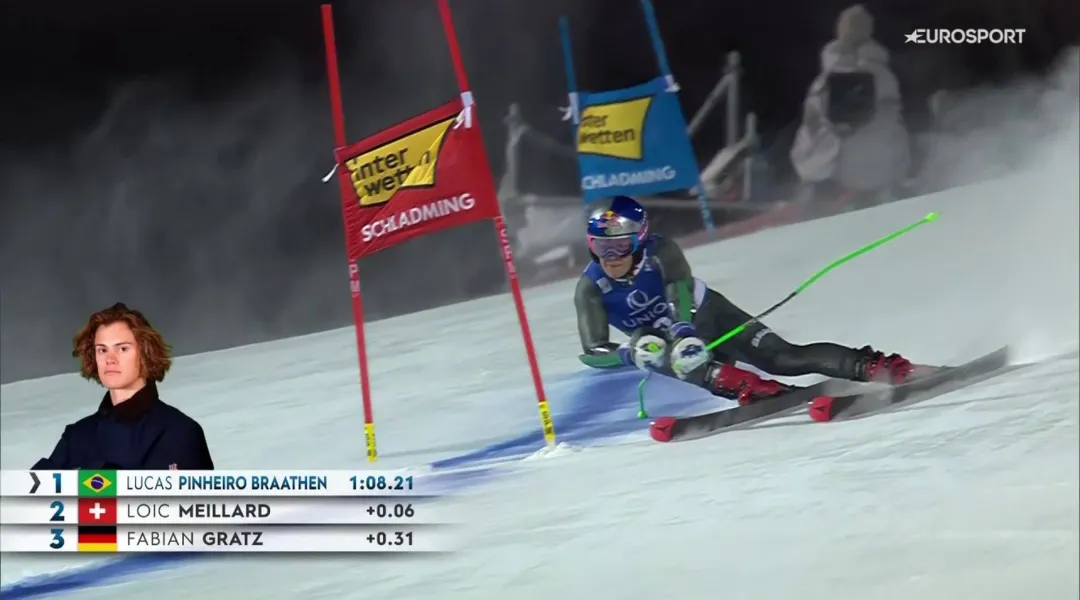 VIDEO SCI ALPINO MASCHILE - SCHLADMING - Lucas Pinheiro Braathen è il migliore dopo la prima manche del gigante notturno sulla Planai, sciando alla grande col pettorale numero 3, tra ottime linee e la giusta aggressività.