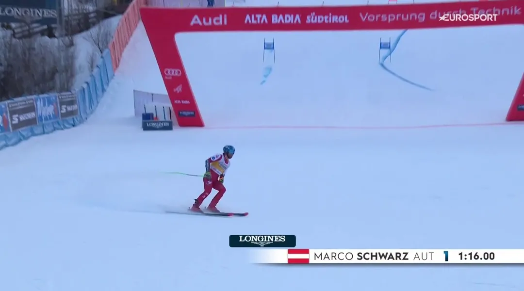 VIDEO SCI ALPINO MASCHILE - COPPA DEL MONDO - Il lungo gigante di Alta Badia nella prima manche ha un solo padrone: è Marco Schwarz, che pennella porta dopo porta e fa un tempo imprendibile per tutti gli altri. L'austriaco rifila distacchi altissimi a tutti quelli che scendono dopo di lui e resta al comando col pettorale 1 dall'inizio della prova.