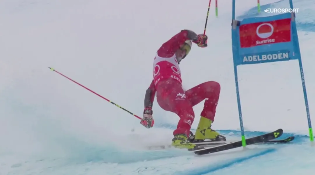 Stefan Brennsteiner cade nella 2ª manche di Adelboden. Il video del ritiro del pettorale rosso di Gigante.