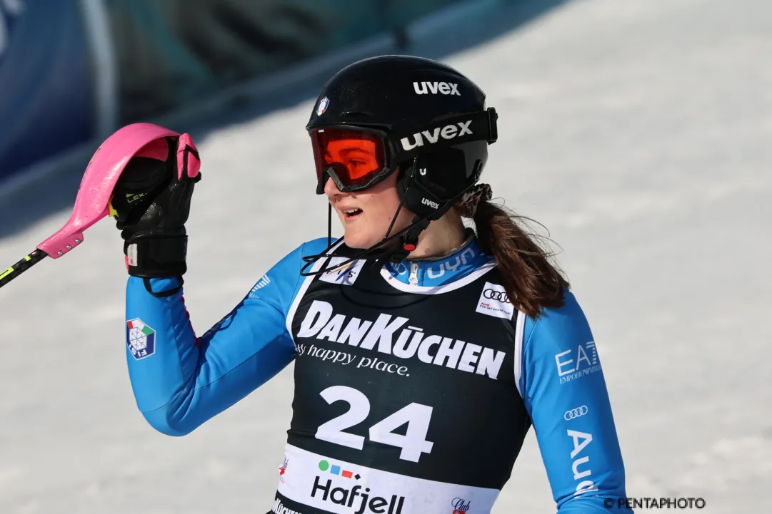 Dopo il 9° posto in slalom, la classe 2008 di Fiè allo Sciliar è strepitosa 12^, visti un paio di errori importanti commessi, a 1”35 da Valérie Grenier che guida al giro di boa (2^ manche al via dalle ore 12.30). Candidamente, la giovanissima azzurra, al microfono di Simone Benzoni in casa Rai Sport, ammette: “Sono molto soddisfatta, ho sciato bene ma ora vediamo la 2^ manche”.