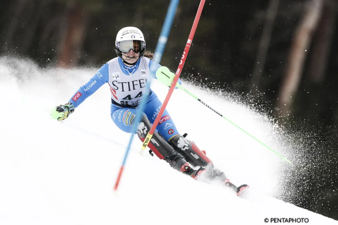 Poi ancora Svizzera con Christen, Good e Egloff, sono cinque le azzurre in top 15 visto che Pomaré chiude undicesima e Mondinelli, partita nella 1^ con il pettorale 54, quindicesima davanti a Carolli (20esima), Antonini (21esima), Haller 26esima e, partite dopo l’inversione, Steinmair 32esima e poi Belfrond più lontana.