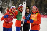 Per la prima volta nella storia la Norvegia si è imposta nella prova a squadre olimpica di salto, in passato il miglior risultato era stato la medaglia di bronzo, ottenuta in tre occasioni, a Calgary 1988, a Torino 2006 e a Vancouver 2010.