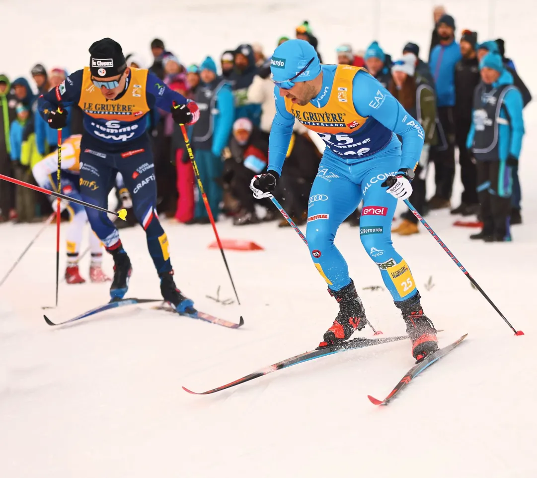 Nell'apertura della tappa sulle nevi vallesi, i padroni di casa Janik Riebli e Valerio Grond sono stati i più veloci, davanti a Norvegia I e Stati Uniti. Buon 4° tempo per la coppia azzurra formata da Elia Barp e Chicco Pellegrino; a ruota il secondo tandem azzurro, con Davide Graz e Martino Carollo. Tra le donne guida Norvegia II, con Germania I e Finlandia I vicinissime. Si qualificano entrambe le coppie italiane, con Iris De Martin Pinter e Federica Cassol che siglano il 6° crono. Appuntamento alle 14.30, quando scatteranno le finali.