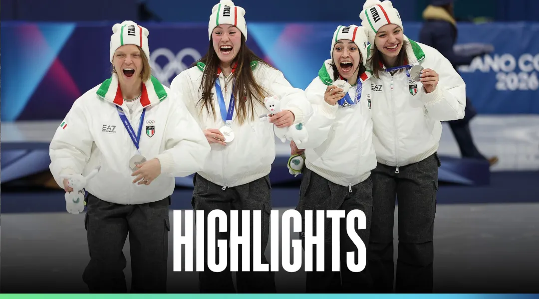 VIDEO SHORT TRACK - L'Italia conquista la medaglia d'argento nella staffetta femminile alle spalle della Corea del Sud con Arianna Fontana, Arianna Sighel, Elisa Confortola e Chiara Betti delle Olimpiadi di Milano-Cortina 2026