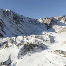 Sciatori dal Drone a Ponte di Legno Tonale per apertura della stagione