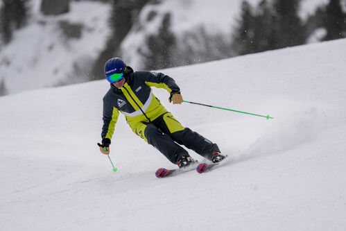 Nuova grafica più accattivante ma stesso sci per il Salomon Addikt Pro 66 nella categoria allroundtop e che abbiamo deciso di testare nuovamente sulle nevi primaverili di Pampeago.