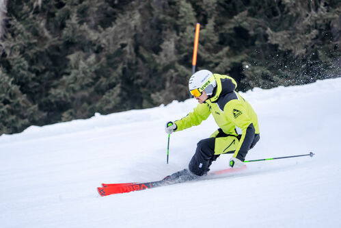 Il pacchetto viene completato alla perfezione, oltre che dalla costruzione 3D.Glass, dai due strati di Titanal su tutto lo sci e dalla collaudata anima in legno multistrato, anche dal nuovo attacco R-Motion 3 GW. La piastra accorciata in combinazione con uno schema di foratura più ampio consente una trasmissione dell’energia più diretta e più potente e permette cambi di spigolo più rapidi. Il clou è però rappresentato dalle due viti posteriori che non sono più fissate e che consentono quindi all’attacco di scorrere liberamente, permettendo allo sci di muoversi armoniosamente su tutta la linea di piegatura senza venire bloccato e con una migliore presa di spigolo.