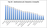 Per quanto riguarda invece le destinazioni montane/appenniniche considerate come le più rilassanti e tranquille a livello nazionale, si posiziona ai vertici di questa classifica Courmayeur con un punteggio di 310 punti, seguita da Bormio con 306 punti, mentre al terzo posto si colloca Bressanone con 278 punti.
