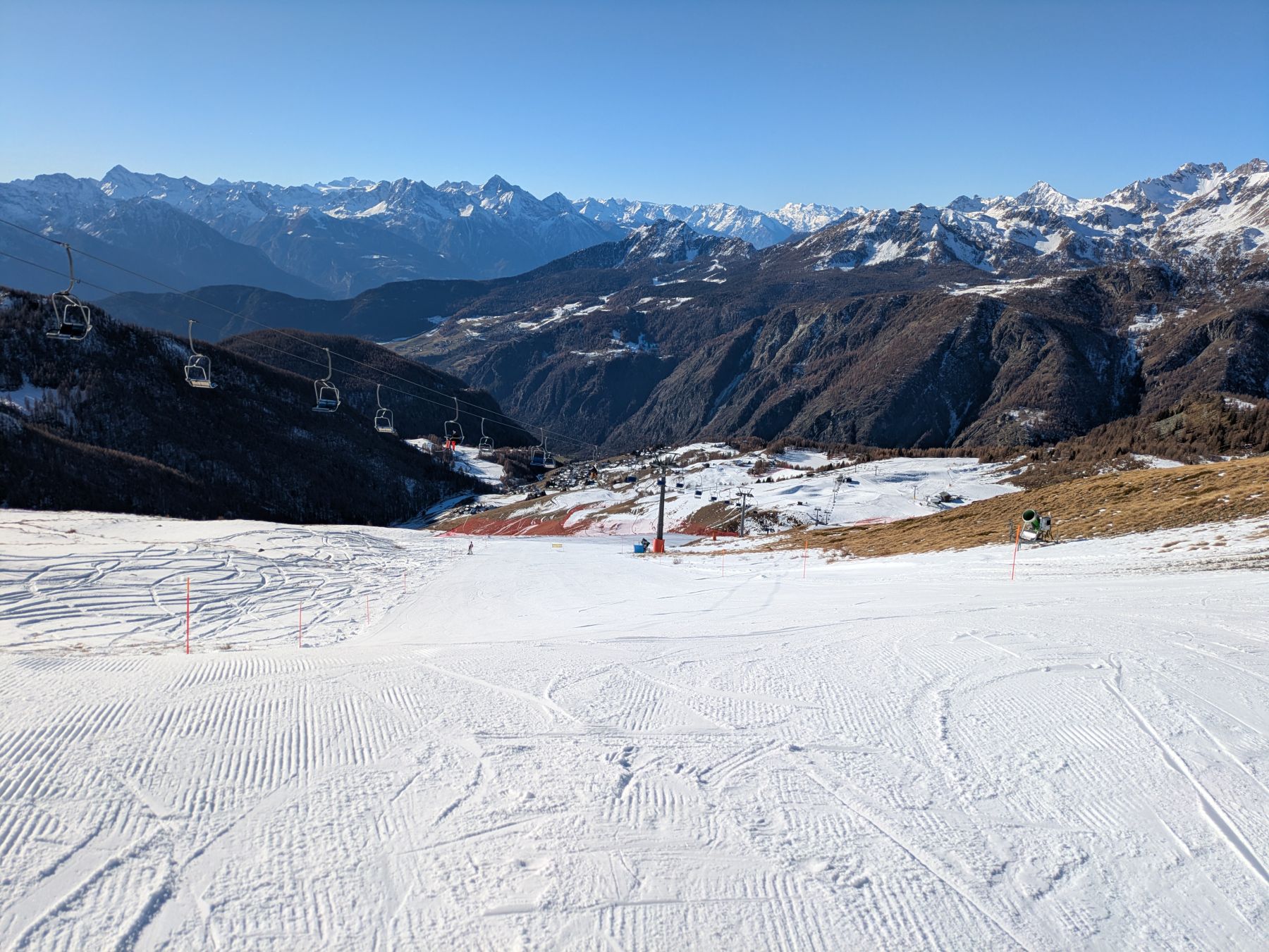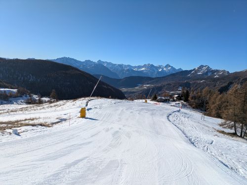 Il tratto iniziale della pista offre una veduta verso Chamois.