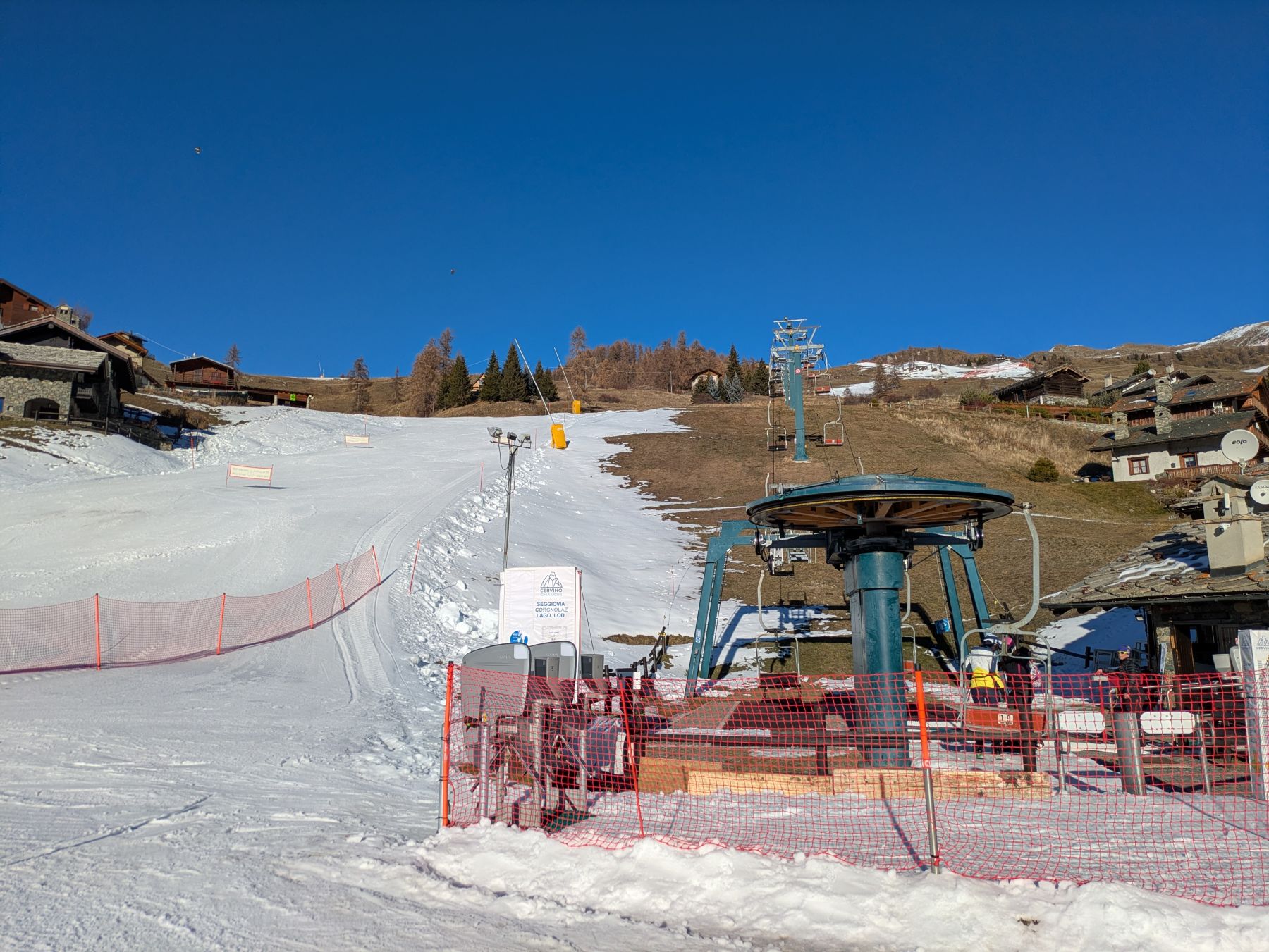 Nonostante lo scarso innevamento naturale, grazie all'efficiente impianto di innevamento programmato e all'ottimo lavoro di preparazione delle piste, la piccola località valdostana offre, in questi giorni, l'apertura di buona parte del proprio comprensorio sciistico, con la possibilità di sciare sull'intero dislivello tra i 2.499 metri del Colle di Fontanafredda e i 1812 metri del centro abitato di Chamois. Con il reportage effettuato da Davide Franchi andiamo alla scoperta della stazione sciistica.