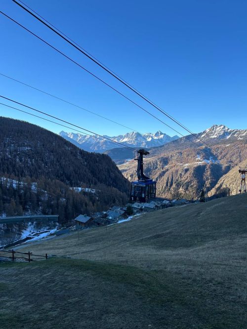 La stazione a monte della funivia è situata nella piazza principale di Chamois dove si trova la Chiesa Parrocchiale di San Pantaleone e il punto di accesso alle piste da sci.