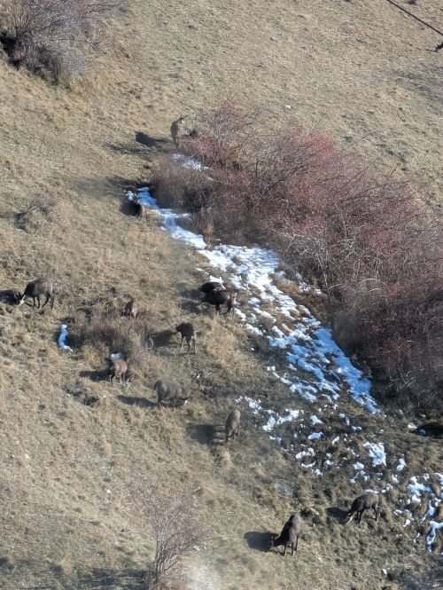 Salendo è molto frequente avvistare branchi di camosci che pascolano sotto il centro abitato di Chamois.